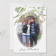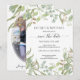Faire part avec votre photo de fiançailles. Design simple, élégant et neutre avec de magnifiques feuilles d'eucalyptus de Californie peintes à l'aquarelle avec des graines. Ovale mat avec une légère brume pour un aspect photo professionnel. Droits d'auteur, Audrey Jeanne Roberts.