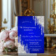 Un moderne, chic et glamour avec des gouttes de paillettes argentées sur fond bleu royal.