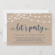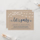 Belles lumières guirlandes de ferme rustique modernes, écriture script bleu marine sur fond de papier kraft, annonce de mariage en fuite, carte d'invitation (Faisons la fête). C'est parfait pour votre réception de mariage et fête de célébration après le mariage. Ajoutez vos détails dans la même police / lettrage.