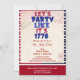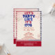 Un drapeau américain étoiles et rayonne l'invitation de la typographie moderne à des amis, proches et famille. Fêtez la fête de l'Indépendance 4 juillet Bash avec style rouge, bleu et blanc. Le modèle design présente une calligraphie moderne pour "FÊTE COMME C'est 1776" sur un fond rose pastel chic et défraîchi avec une bordure. Le côté inverse a un motif correspondant. Le texte peut être facilement customisé.