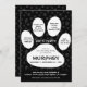 Une invitation de fête d'anniversaire créative sur le thème du chien avec un grand design de patte. Le texte comprend des phrases ludiques comme "Faisons la fête," ainsi que les détails de l'événement tels que la date, l'heure, le lieu et une note pour amener les animaux de compagnie (bébés à fourrure). Le design invite les invités à célébrer la journée spéciale de Murphey de manière amusante et festive.