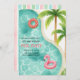 Faites des vagues avec cette adorable invitation d'anniversaire à thème fête au bord de la piscine aquarelle ! Avec une piscine aux courbes sinueuses peinte à la main, des palmiers tropicaux, des flotteurs flamants roses et des rayures pastel douces aquarelles, ce design est parfait pour une célébration estivale amusante. Personnalisez avec le nom de votre enfant, la date de la fête, l'heure et l'adresse pour une invitation unique.
