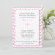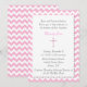 Invitation du baptême de la jolie fille, ou première invitation de communion, faite dans un motif de zigzag rose et blanc de chevron. Les graphiques de l'un secteur blanc des textes, avec un bord cranté, au milieu de l'invitation, a des graphiques d'une croix assez rose décorant le milieu. Personnalisez le texte gris-foncé et rose pour votre baptême de bébés. Belle manière d'inviter les amis et la famille, à être témoin du jour spécial de votre enfant à l'église.