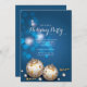 Les ornements élégants de Noël Gold & Silver Christmas Holiday Invitation sur un arrière - plan moderne de livres bleus. Renversez notre chic invitation de vacances pour voir un match de fête en retour pour une touche spéciale. Belle invitation pour une fête de bureau, une fête de compagnie, un dîner, une fête de noël, une fête de fête de Noël ou toute autre occasion spéciale hiver se réunir.