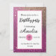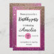 Cette magnifique invitation présente un arrière - plan de parties scintillant rose vif, orné d'accents de parties scintillant dorée, ajoutant une touche d'élégance et de brillance. Avec son design féminin et soigné, il est parfait pour les anniversaires et autres événements festifs. Personnalisez l'invitation avec les détails de votre propre fête pour en faire vraiment unique. Préparez-vous à impressionner vos invités avec cette invitation séduisante et glamour qui donne le ton pour une fête d'anniversaire mémorable et éblouissante.
