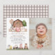 Invite friends and family in style and set the tone for your special day with this charming birthday invitation. Design features farm animals (cow, horse, sheep, pig, rooster, chicken), brown barn and brown tractor on white background.