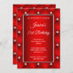 Créez votre propre fêté d'anniversaire de style stylisé 5x7 invitation style pour elle. L'image graphique de l'art numérique arrière - plan décoratif présente un faux diamant ou un bijou en strass, à l'ombre brillante de satin rouge. Au centre sur l'avant, il y a un cadre de bordure en faux argent sur une couche de dégradé foncé et rouge foncé pour vos informations invitations personnalisées. Déplacez ou supprimez le faux graphique brillant blanc. Customisez les styles, la couleur et la taille des polices blanches. Fabuleux invitation d'anniversaire de fille pour votre meilleur ami. L'invitation de fête d'anniversaire d'une fille ou d'une femme.