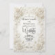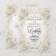 Set the tone for a sophisticated union with this sculptural floral design. Perfect for traditional couples seeking the grandeur of stone carving in elegant print.This design features a masterful "trompe l'oeil" visual effect, simulating the look of hand-carved plaster relief or sculpted stone. The artwork depicts intricate swirling vines, rosebuds, and ornate filigree in a monochrome palette of soft ivory, cream, and champagne tones. The border frames the text with a dimensional look, creating shadows and highlights that suggest a tactile, raised surface.This is a flat printed image with a visual texture effect, not actual raised material, embossing, or 3D objects.