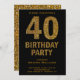 Invitation Faux Gold Parties scintillant 40e Anniversaire Fêt