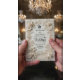 Set the tone for a timeless union with this sophisticated design, featuring an intricate faux-engraved aesthetic and romantic vintage silhouettes.