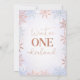 Faux Rose Gold Winter One-derland Birthday Invitation Sweet winter one-derland invitation de premier anniversaire avec quelques calligraphies modernes et texte serif dans une feuille de parties scintillant en or rose faux. Le design présente également des flocons de neige bleu gris et de l'or faux rose. Cette invitation pour le premier anniversaire d'une fille d'un derland, simple mais douce, est idéale pour une première fête d'hiver sur le thème des filles.