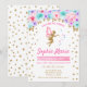 Fairy First Birthday Party Invitation. Design mignon en or parties scintillant faux avec accent floral. Carte Invitation avec parties scintillant fairy silhouette étoiles et police de script. Violet, lavande rose, turquoise et blanc. Parfait pour une magique fête du 1er anniversaire.