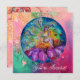 Invitation FÉE DANS LA NUIT rose vert bleu jaune scintille