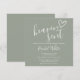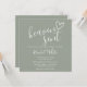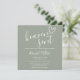 Une invitation à une fête de naissance moderne et minimaliste avec un cœur dessiné à la main et une typographie élégante sur fond vert sauge. Conçue par Thisisnotme©