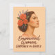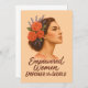 Une femme avec des roses et de la lavande dans les cheveux regarde avec confiance sur le côté. Le texte "Empower Women Empower the World" est affiché avec élégance.