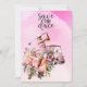 Invitation Femme golfeuse avec voiturette de golf rose sur ro