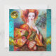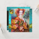 Peinture contemporaine originale aquarelle avec feuille d'or et couleurs irisées en vert clair, orange jaune, turquoise, turquase, blanc.Elégante, belle femme brune sophistiquée, rouge, vert brillant d'or tissus d'un costume baroque avec plumes paon.Peinture de Bulgan Lumini (c).Cette carte cool et artistique est parfaite pour les mariages, douches nuptiales,16, fêtes d'anniversaire de l'époque, boules de danse costumées, fiançailles romantiques, enregistrer les annonces de dates, cocktails, célébrations, anniversaires, rassemblements,