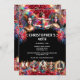 Une scène nocturne éclatante, frappante et éblouissante d'un trapèze faisant les éclats sur l'épaule de deux artistes de spectacle. La femme, dont la tête et les épaules sont visibles, porte des hauts bas coupés et des perruques colorées multicolores. Leurs gros cheveux volumineux correspondent aux feux d'artifice qui les entourent. Ils sont fixés contre un arrière - plan rouge plus brillant et ont des modèles de texte modifiables en blanc en dessous contre un arrière - plan noir. L'extrémité inférieure de cet invitation époustouflant abrite une rangée d'artistes de carnaval, chacun vêtu d'un costume de robe fantaisie. Le dos de l'invitation a le même design et un modèle de texte pour des informations supplémentaires pour vos invités, si nécessaire. Dans le cas contraire, supprimer le libellé au verso. Ce design d'aquarelle luxueux, élégant et haut de gamme est idéal pour un mardi gras, un festival, un carnaval ou une fête de cirque, que ce soit une retraite, un anniversaire, un halloween ou un dîner assis. Il conviendra aux ados comme aux adultes
