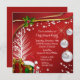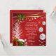 C'est une élégante invitation aux fêtes de fin d'année, avec vos informations de fête en blanc au centre. Le texte est entouré d'images éclatantes de la saison, dont trois ampoules blanches brillantes, des paquets cadeaux festifs, un chapeau de Père Noël, un arbre blanc nu et brillant, et une branche de saint. Des étoiles blanches brillantes et des images de rubans d'or complètent l'image. Il y a beaucoup de place pour votre texte personnalisé contre un arrière - plan de dégradé rouge. L'arrière de l'invitation est rouge assorti et solide. Festive et jolie, cette invitation attirera l'attention ! Et il est facile d'adapter cette invitation à une entreprise ou à une entreprise. Si vous souhaitez ajouter du texte supplémentaire à l'arrière, choisissez Customiser. *Merci à Scrap et Tubes pour les clips utilisés dans cette conception.