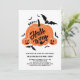 Invités Invitations à votre événement avec cette invitation personnalisée à la fête d'Halloween. Il présente des citrouilles mignons et éffrayants et des chauves-souris avec typographie moderne. Personnalisez en ajoutant vos détails. Cette invitation de fête d'Halloween citrouille est disponible dans d'autres cartons. Des éléments correspondants sont disponibles.