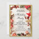Invitation de fête annuelle de la compagnie avec une parties scintillant d'or brillant frôle la frontière, des cadeaux rouges et blancs avec des arcs, des décorations comme des baubles rouges, et des écritures noires sur bois blanc rustique ressemblant à une couverture de neige. C'est une invitation parfaite pour les vacances / Noël / hiver !