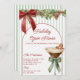 Festive Gingerbread Martini Holiday Open House Invitation – A festive classic with a modern twist! This elegant holiday open house invitation features a charming watercolor illustration of an espresso martini topped with a playful gingerbread man, surrounded by a delicate garland and coquette-inspired red velvet bow. The soft sage green striped background and trendy arch design add a touch of sophistication and warmth.