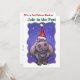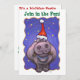 Animal Parade Festive Heads and Tails Hippo Party Invitation présente notre oeuvre amusante d'un hippo mignon planté dans un chapeau de Père Noël rouge debout dans un paysage enneigé contre un ciel étoilé bleu foncé texturé peint par notre talentueux illustrateur pour enfants, Traci Van Wagoner. Sur le dos de cet invitation hippo amusant, vous trouverez le mignon hippo de l'arrière portant une couronne sainte avec un arc de Noël rouge. Notre art hippo festif fait des cadeaux uniques pour les amoureux de Noël, les amateurs de hippo, les amoureux des animaux, les amoureux des animaux de safari, les amoureux des animaux d'Afrique et les amateurs d'art mignon sur votre liste de cadeaux cette saison.