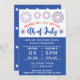 Une invitation moderne pour une 4 juillet fête pyrotechnique. Avec des images de feux d'artifice et l'expression "les étincelles voleront sur le 4 juillet". Un design élégant et patriotique, parfait pour une fête de l'Indépendance.