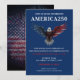 Célébrez un événement unique avec cette invitation pour célébration de l'America250 Party, créée pour honorer le 250e anniversaire des États-Unis le 4 juillet 2026. Parfaite pour les fêtes patriotiques, les rassemblements communautaires, les célébrations de quartier et les événements commémoratifs historiques, cette invitation donne le ton pour une fête d'Indépendance significative et festive. Conçue pour marquer le Semiquincentenaire de l'Amérique, elle met en avant la fierté nationale, la tradition et la convivialité tout en invitant les convives à profiter d'une soirée mémorable qui pourra inclure une bonne nourriture, une compagnie animée et des feux d'artifice. Facile à personnaliser, il suffit d'ajouter les détails de votre événement pour créer une invitation professionnelle et accrocheuse disponible en formats imprimé et numérique. Idéal pour les hôtes qui prévoient une célébration