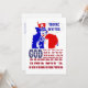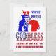 Oncle Sam rouge, blanc et bleu patriotique avec le slogan Dieu bénisse l'Amérique et une bulle de texte personnalisable. Ajoutez facilement votre propre texte à ce design pour vos invitations de fête, jour de l'indépendance, parti politique.