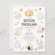 Invitations amis et famille pour une fête d'anniversaire à thème halloween spooktaculaire avec notre mignonne invitation de fantôme amical. Le design comprend une typographie de fantôme amusante, un modèle moderne encadré de fantômes adroits à l'aquarelle et décoré d'étoiles.