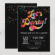 Préparez-vous à célébrer avec cette invitation verticale "Faisons la fête !" lumineuse et colorée ! Avec son texte à l'aquarelle arc-en-ciel vibrant et ses confettis festifs sur fond sombre, elle est parfaite pour tout anniversaire animé, remise de diplôme ou événement spécial.