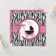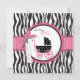 Poussette bébé et carte de style de boutique avec des accents rose chaud et une impression zèbre et pois.