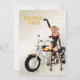 Une belle fille de motards pointe vers votre invitation à la fête. Une invitation irrésistible pour les hommes de tout âge.