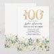 Invitation Fête d'anniversaire 100 ans Floral Vert & Blanc