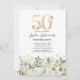 Invitation Fête d'anniversaire 50 ans thème floral vert et bl