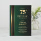 Invitation Fête d'anniversaire 75 ans vert noir rayures dorée