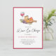 Invitation simple et élégante à une fête d'anniversaire Vin & Fromage ou toute autre occasion, représentant un plateau de fromage peint à la main avec des fruits, du fromage et un verre de vin.