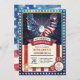 Célébrez dans l'esprit américain avec cette invitation audacieuse et dynamique d'anniversaire avec un majestueux aigle chauve aux ailes peintes dans les étoiles et rayures du drapeau américain. La puissante illustration de style aquarelle s'inscrit dans un décor festif de feux d'artifice et d'une bordure rouge, blanche et bleue classique ornée d'étoiles. Une bannière de style vintage affiche fièrement "All American", ce qui rend ce design parfait pour les célébrations d'anniversaire sur le thème patriotique. La typographie accrocheuse et les détails RSVP de style badge complètent le look, ce qui lui donne un attrait amusant mais sophistiqué.