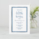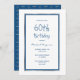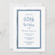 Sur le devant : Un arrière - plan blanc chic avec un faux cadre argenté et bleu classique. Modèles pour un nom et les détails de la fête. Le nom est écrit avec un script de style écrit à la main, des lettres de couleur bleue. Le texte : 60ème anniversaire (ou tout âge) est écrit avec un script de style nautique rustique. Parfait pour une fête d'été nautique ! Dos : arrière - plan bleu classique et motif d'ancre faux argent.