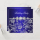 Invitation Fête d'anniversaire bleu foncé Floral Damask Argen