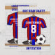 Invitations bleues et rouges personnalisées de partie de chemise du football du football. Ajoutez votre propres nom et nombre pour créer le faire-part pour votre anniversaire ou toute autre occasion spéciale.