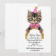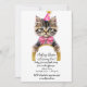 Invitation Fête d'anniversaire chaton chat rose or glitter