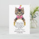 Invitation fête d'anniversaire chaton chat rose or glitter