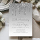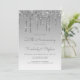 Cette invitation de fête d'anniversaire de mariage tendance 25 ans présente une bordure de gouttes de paillettes argentées scintillantes et un fond ombré argenté. Les mots "25e Anniversaire" et les prénoms du couple apparaissent dans une écriture manuscrite grise argentée décontractée, le reste du texte personnalisable étant en police sans serif. Le même motif de gouttes de paillettes argentées apparaît au verso.