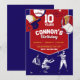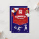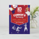 Frappez un home run avec cette invitation sportive d'anniversaire! Parfait pour le petit salaud de votre vie, ce design présente une illustration ludique en rouge et bleu, parfaite pour une fête d'anniversaire sur le thème du baseball. Réunissez votre équipe pour une fête remplie de plaisir, de jeux et de joie d'anniversaire!