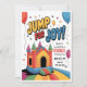 Faites de votre enfant un anniversaire extra spécial avec cette invitation amusante et colorée à thème de la maison bondée! Doté d'une vibrante maison gonflable en rouge, bleu, jaune et vert, ballons ludiques, confettis, et d'une vedette festive "Sauter pour la joie !", ce design donne le ton parfait pour une fête passionnante. Son style lumineux et gai en fait un lieu idéal pour les anniversaires d'enfants, assurant une célébration inoubliable. Customisez avec le nom de votre enfant, la date de la fête, l'heure, l'emplacement et les détails RSVP pour le rendre unique à vous. Parfait pour les fêtes de retour, les centres de jeux gonflables et les jardins d'anniversaire!