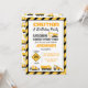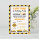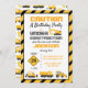 Mignonne en construction invitation fête d'anniversaire. Jaune, blanc noir et gris avec camion de construction, panneau de prudence et motif de cône de construction.