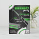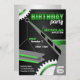 Invitations d'anniversaire noires, grises et vertes conçues pour les garçons qui ont un intérêt marqué pour la construction et l'ingénierie. Ces invitations peuvent être utilisées pour les adultes aussi simplement en supprimant l'âge à un chiffre, peut-être en faisant un monogramme à la place, si elle s'intègre dans l'espace alloué. Enveloppes et poteaux correspondants (articles vendus séparément) :