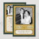 Célébrez ce couple spécial avec cette invitation de fête pour un Anniversaire de Mariage en Or. Leur photo est placée sur un fond à motif damassé or avec une bordure vert foncé. (Assurez-vous de remplacer cette image frontale par une photo grande et haute résolution). Leurs noms et date de mariage (ou tout autre texte) sont mis en valeur dans la plaque en dessous. Puis montrez-les tels qu'ils étaient alors et comme ils sont maintenant au verso avec toutes les informations sur l'événement en dessous. Disponible en d'autres couleurs avec des faveurs et un affranchissement assortis disponibles.